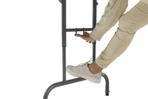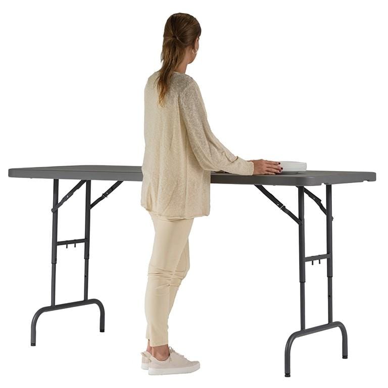 Opis: Stol Worktop180 ZOWN je dizajniran za profesionalnu upotrebu na raznim događajima u zatvorenim i otvorenim prostorima. Sa svojim podesivim visinom, idealan je kao radni stol za zadatke koji se izvode stojeći, jer omogućava podešavanje visine na 85 cm, 90 cm i 94 cm. Osim toga, može se koristiti i kao standardni stol visine 74 cm. Praktičan mehanizam za podešavanje visine omogućava jednostavno i brzo prilagođavanje prema potrebama korisnika. Uključuje i automatske klizne sigurnosne igle koje sprečavaju nenamerno sklapanje.
