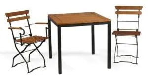 Opis: Vrtna stolica Ljubljana ZRN je dizajnirana za profesionalnu upotrebu u ugostiteljskim i hotelskim terasama. Njena sklopiva metalna konstrukcija od pocinčanog željeza, zaštićena otpornom antracit bojom, osigurava stabilnost, otpornost na koroziju i dugotrajnost. Sjedište i naslon od drveta (impregnirana akacija) pružaju prirodnu otpornost na vremenske uticaje te dugotrajnu izdržljivost.